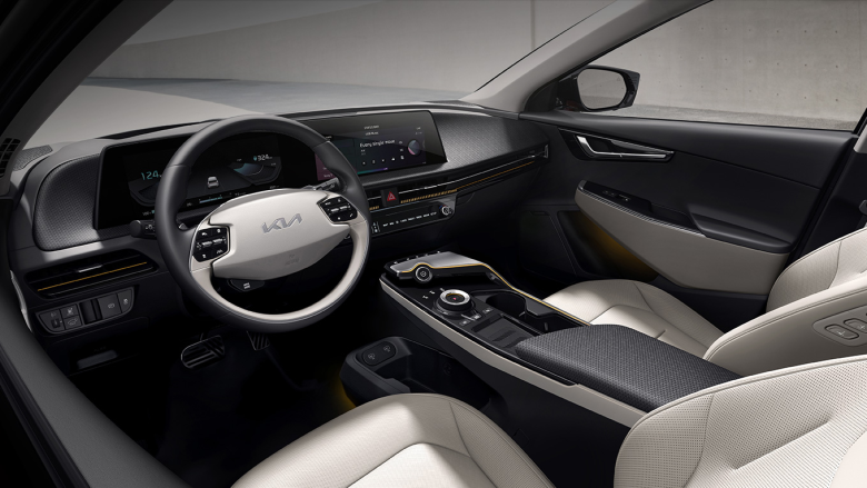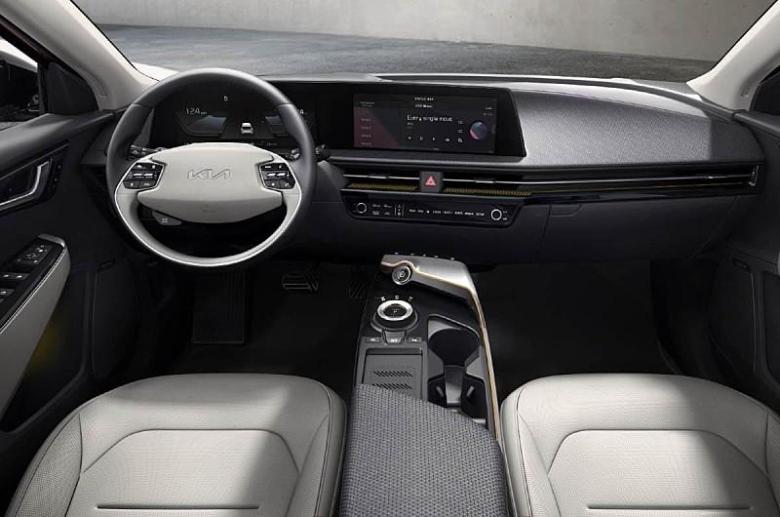 'EV6'의 문을 딱 열면 운전석에서 중앙 콘솔까지 이어지는 '파노라믹 커브드 디스플레이'가 눈에 들어옵니다. 운전석 계기판과 오른쪽 내비게이션 등 디스플레이의 경계가 눈에 들어오지 않고 쭉 이어지는 느낌으로 실내 공간이 더 넓어보이는 효과를 줍니다.