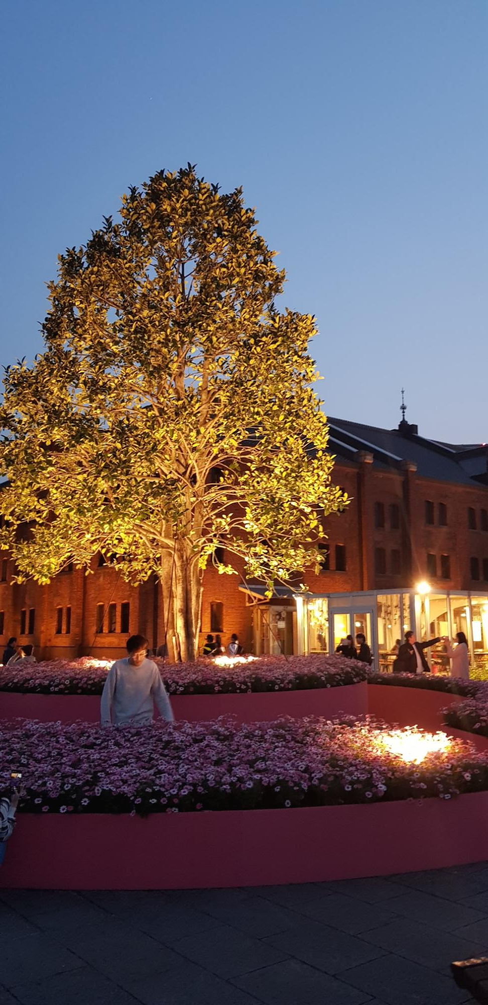 주차장쪽에 있는 아카렌가 창고 2관. 이 건물도 조명을 비추니 멋있어집니다. 공사를 하는건지 사람은 보이지 않고 경비분들만 주변에 있었습니다.