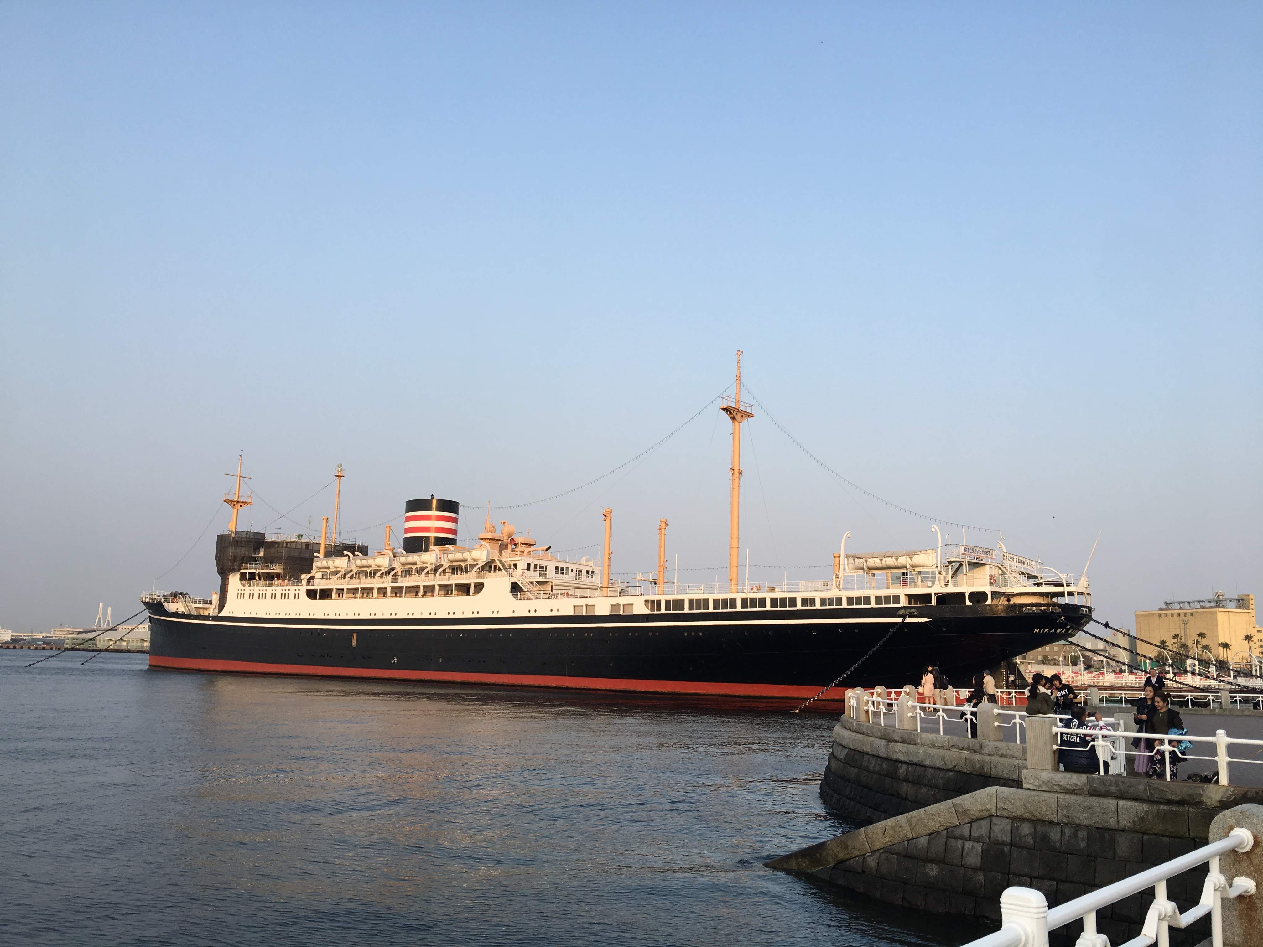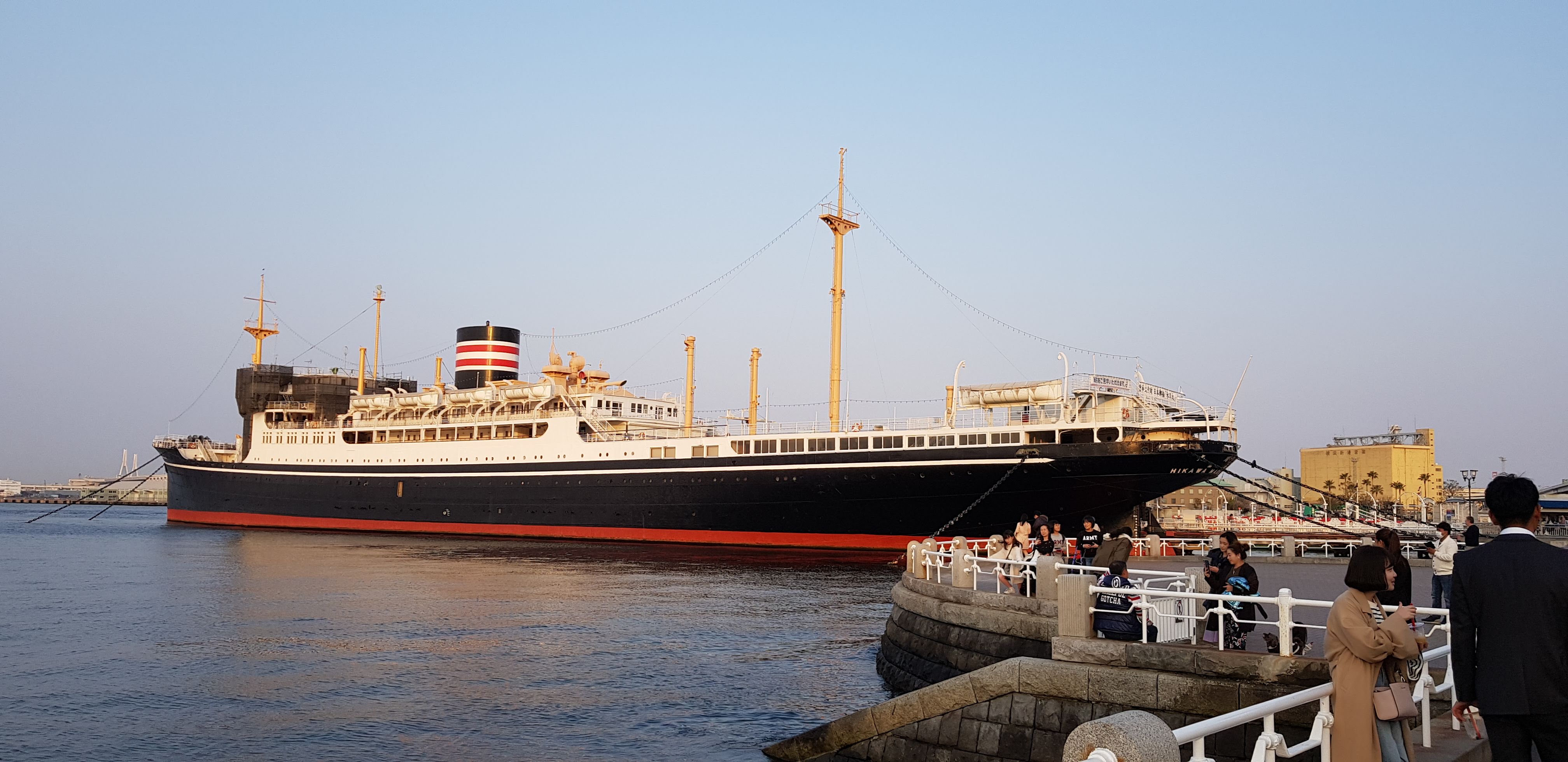 한 때, 태평양의 여왕으로 불렸던 초호화 유람선인 '히카와마루'가 정박되어 있습니다. 거대한 유람선이 요코하마 앞바다의 풍경을 더욱 운치있게 만들어 줍니다.