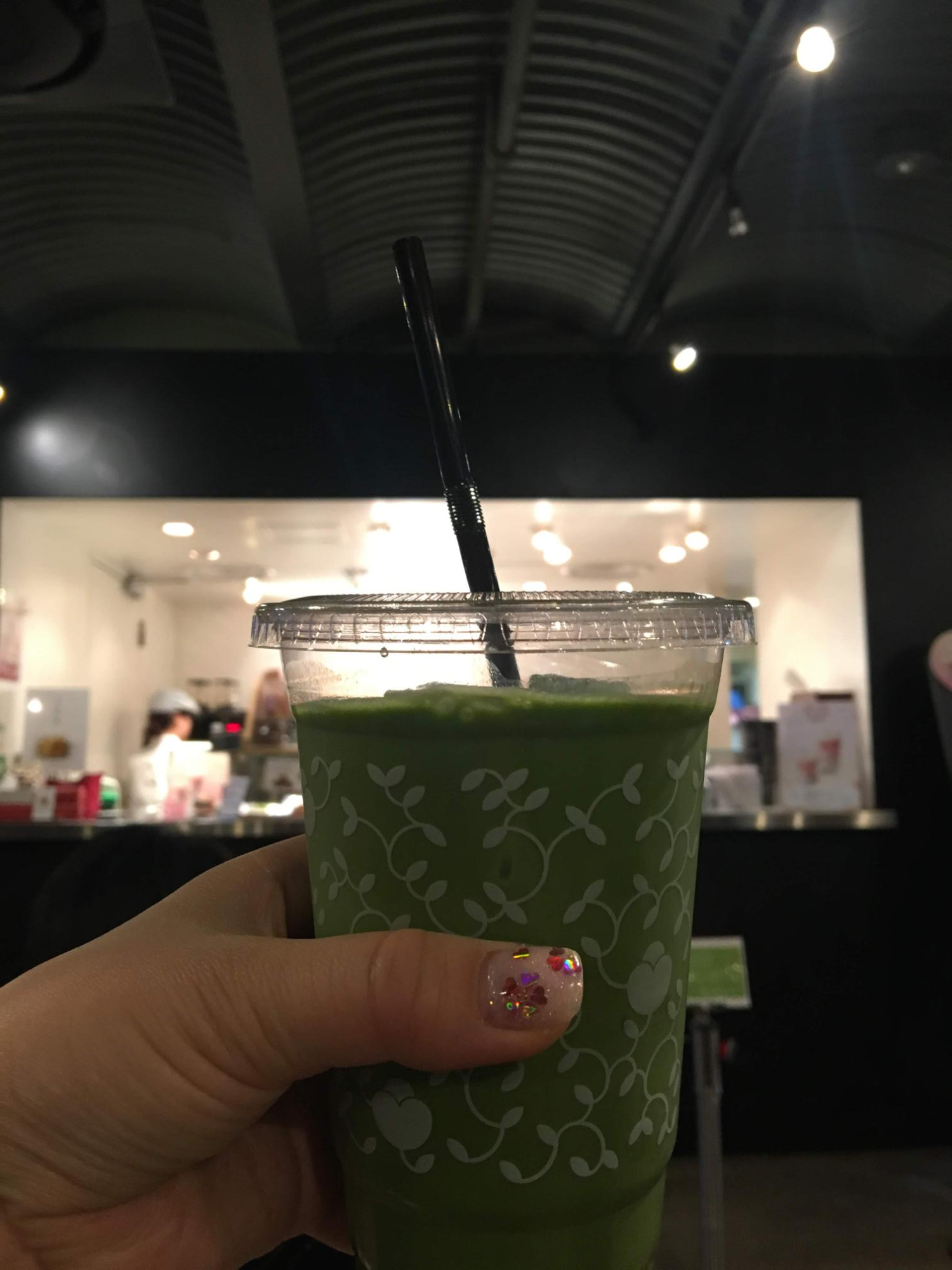 와이프가 찍은 사진. 녹차 라떼인가를 주문해 마시며 쉬다갑니다.