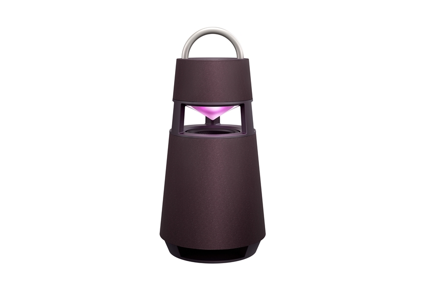 'LG 엑스붐 360'은 피콕그린, 버건디, 베이지 등 인테리어에서 사용하면 좋을 다양한 색상과 따뜻하면서도 편안한 느낌을 주는 패브릭 소재 등을 적용했습니다. 제품의 위쪽에는 알루미늄 소재의 손잡이가 달려있어 쉽게 옮겨가며 사용할 수 있습니다.