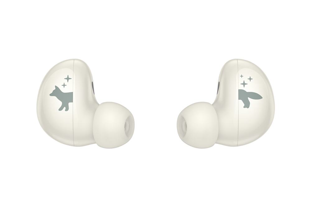 '갤럭시 버즈2' 메종 키츠네 에디션은 문락 베이지 색상을 바탕으로 여우 모양과 별 모양이 이어버드에 새겨져있습니다. 또 한 스타더스트 그레이 색상의 가죽 충전 케이스에는 메종키츠네 폭스 헤드 로고가 새겨져있습니다. 여우 모양을 통해서 브랜드의 아이덴티티를 강조했습니다.