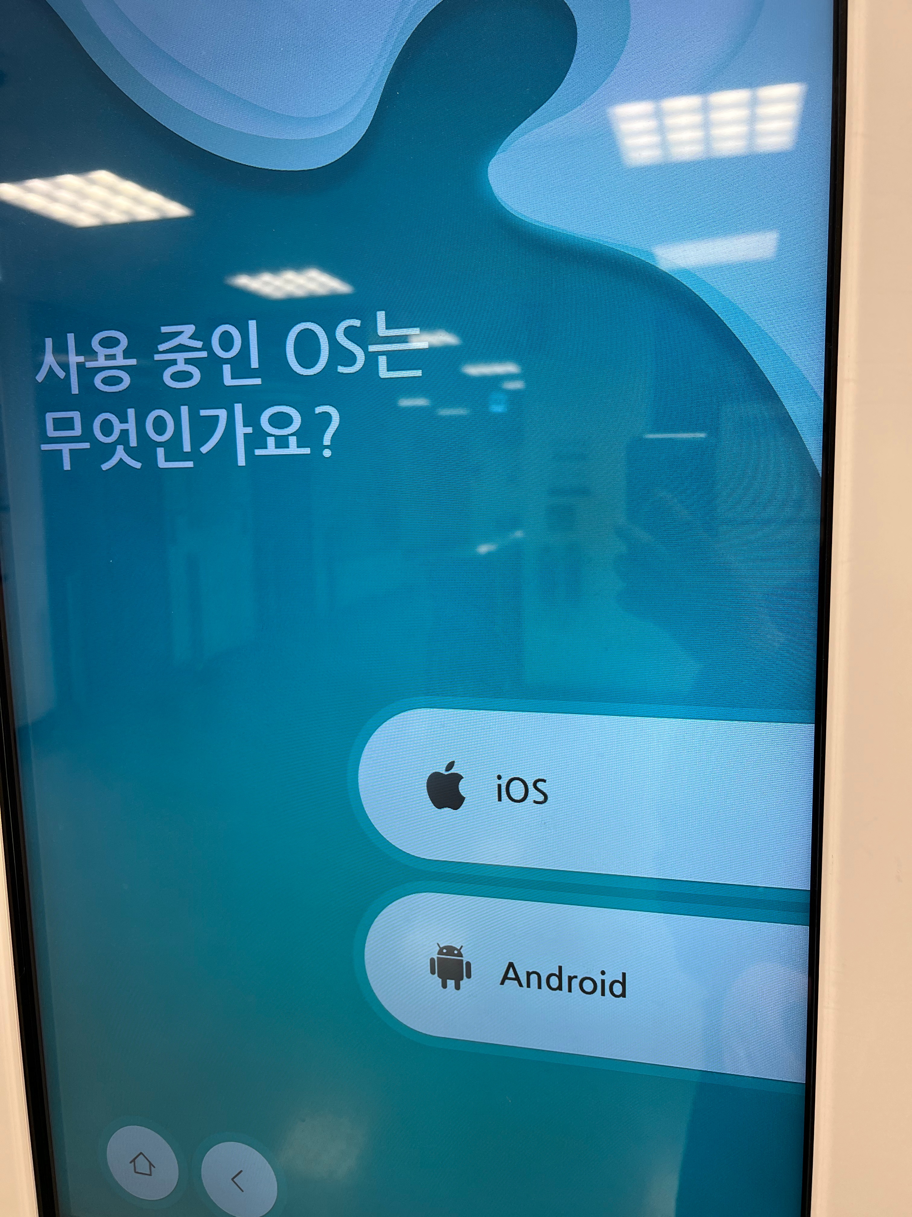 판매할 스마트폰의 운영체제를 선택해주고 진행합니다. 기기에서 QR 코드가 출력된 스티커가 나오는데 스마트폰의 뒷면에다가 붙이면 됩니다.