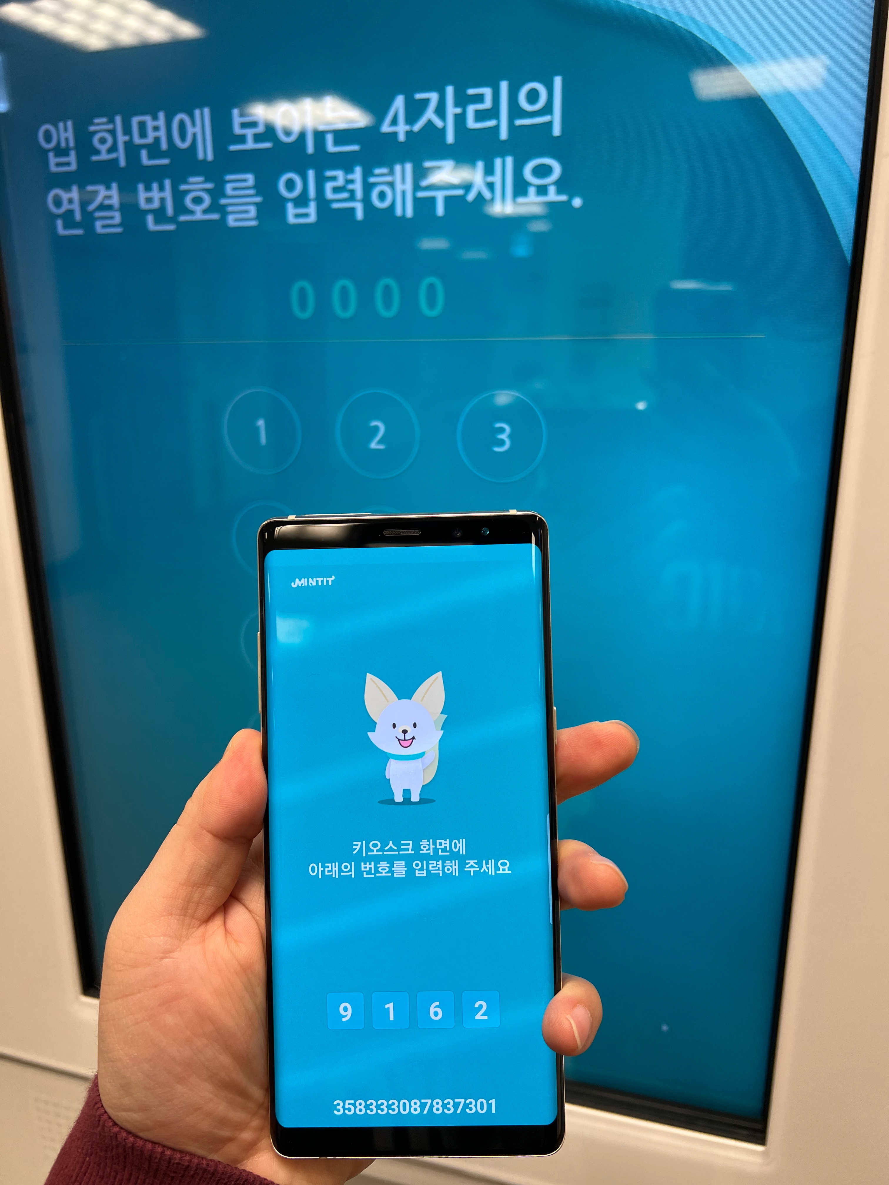 민팃 앱을 실행시키면 시키는 대로 4자리 숫자를 ATM 기기 화면에 입력해줍니다.