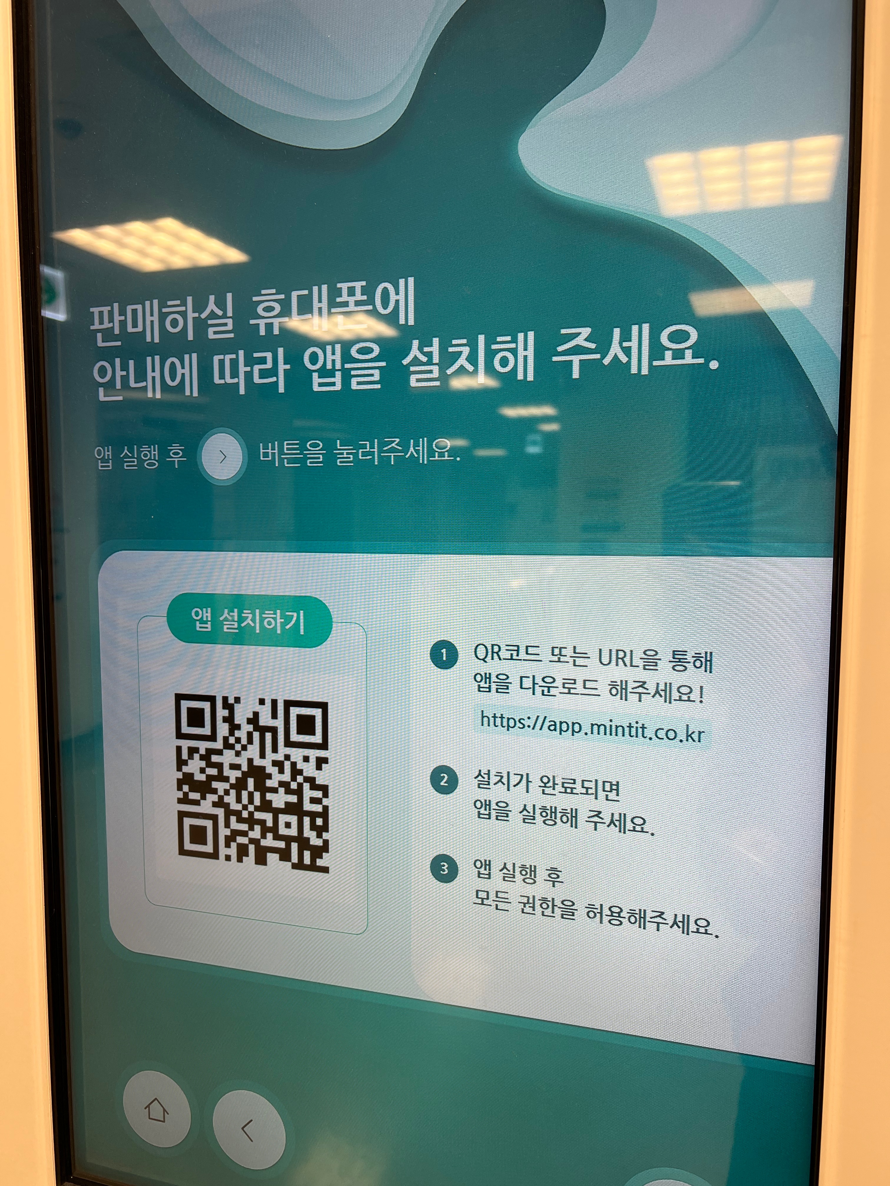 그리고 스마트폰의 기능 검사를 하기 위해서 민팃 앱을 설치해야합니다. 기기에서는 제공되는 와이파이를 이용해서 앱을 설치하라고 하는데 잘 안되는 경우가 많이 있습니다.
