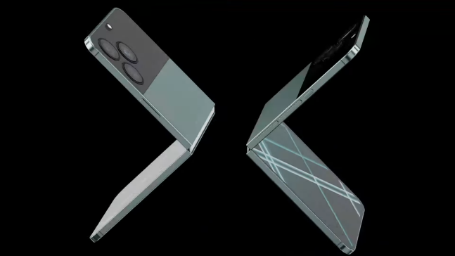 이미지를 처음 봤을 때는 삼성전자의 클램쉘 방식 폴더블 스마트폰인 '갤럭시Z플립'이 떠오르는 느낌입니다. 화면을 세로로 접어 극도의 휴대성을 구현할 수 있는 폼팩터입니다.