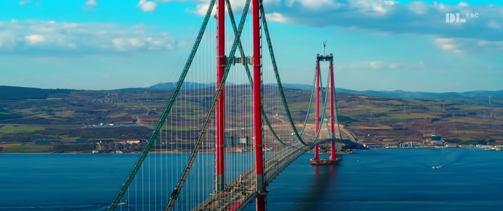 일단 차나칼레 대교의 시공에 'DL이엔씨'와 'SK에코플랜트'가 참여한 컨소시엄이 참여했습니다. DL이엔씨와 SK에코플랜트는 예인선 4척을 동원해 20mm 오차 내에서 정확한 위치에 주탑의 기초인 '케이슨(Caisson)'을 안착시키는 기술력을 발휘했습니다.