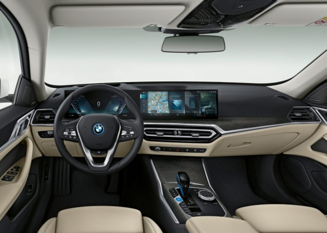 BMW i4에는 새로운 커브드 디스플레이가 장착되었습니다. 12.3인치 인스트루먼트 클러스터와 14.9인치의 컨트롤 디스플레이를 통합해 운전자 중심의 디스플레이를 구현했습니다.