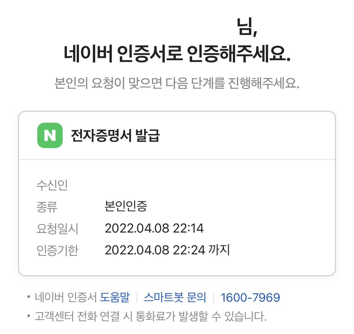 어짜피 네이버 앱에서 가입하는거라 큰 어려움없이 진행합니다. 만약 네이버 인증서가 발급안되어 있다면 발급받아 주시면 됩니다. 각종 서비스들에서 간편 인증으로 네이버를 사용할 수 있기 때문에 일단 발급받아두면 요긴하게 쓰입니다.