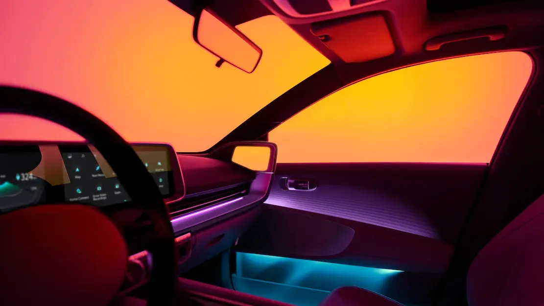 인테리어 곳곳에 파라메트릭 픽셀을 적용해 아이오닉 브랜드의 테마를 녹여냈습니다. 아이오닉 6에는 현대차 최초로 듀얼 컬러 앰비언트 무드램프가 적용되어 감성을 더해주었습니다. 앰피언트 램프는 상단과 하단에 각각 64가지 색을 제공해 총 4096가지 조합을 선택할 수 있도록 했습니다.