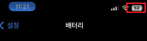 이런식으로 백분율 표시로 나옵니다. 현재 제 아이폰의 배터리는 52%만 남아있군요.
