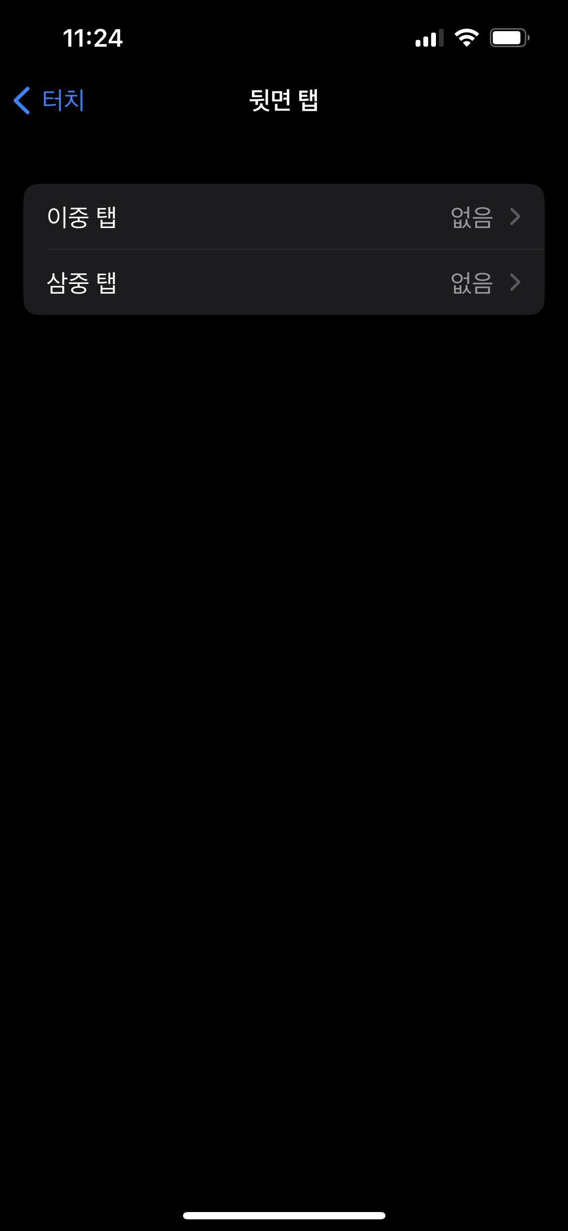 아이폰의 뒷 면을 두번 혹은 세번 탭했을 때 어떤 동작을 하도록 설정할 것인지를 다루는 곳입니다. 현재는 없음으로 설정되어 있는데요. 이중 탭이나 삼중 탭을 선택하고 '스크린샷'을 선택해주면 됩니다.