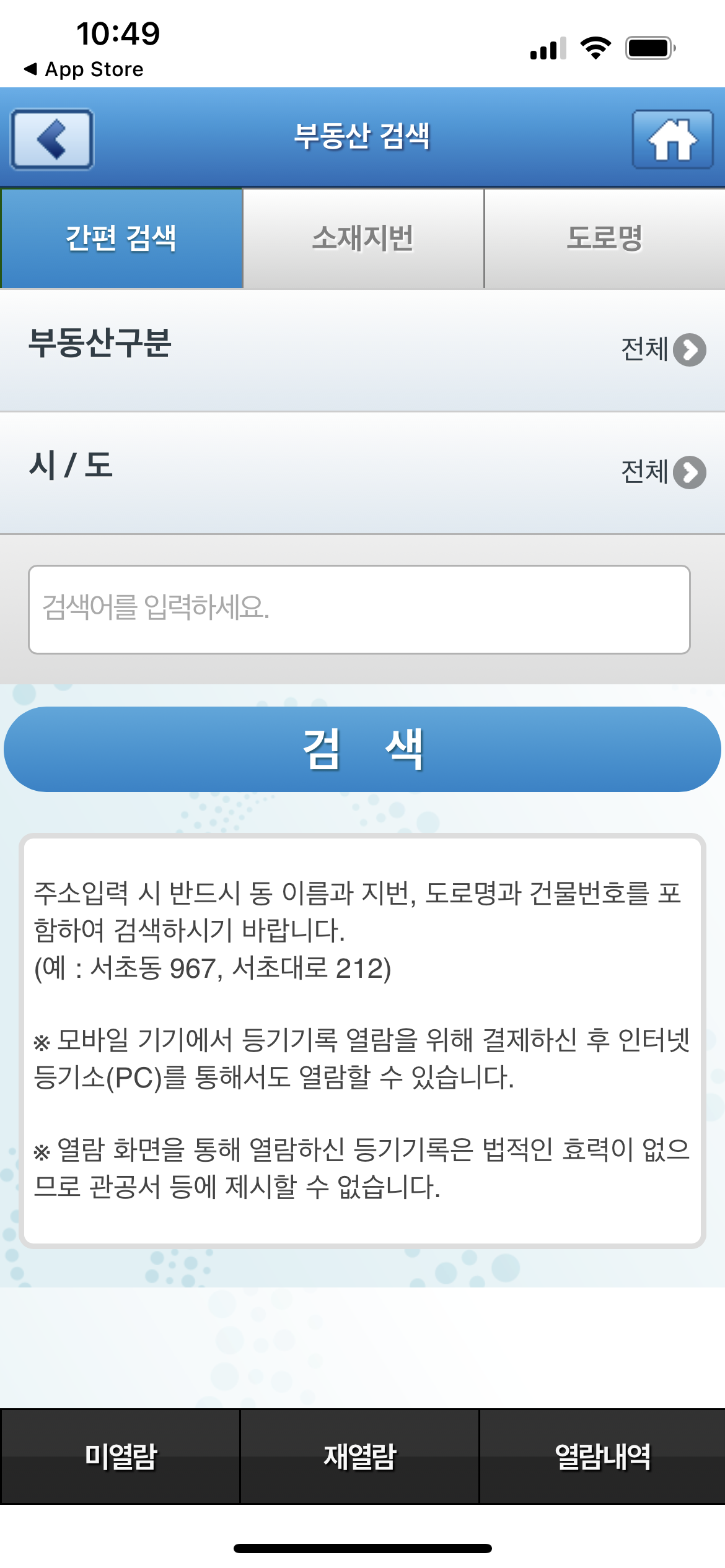 요즘 왠만한 서비스들은 인터넷 페이지가 아닌 스마트폰 앱으로 가능합니다. 부동산 거래를 할 때, 매물의 등기부등본을 열람해서 선순위 대출 같은게 있는지 근저당권이 잡혀있는지 확인해야합니다.