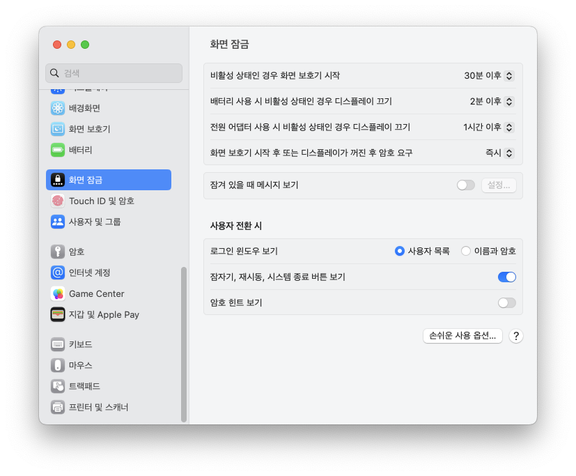 [Mac] 맥북 화면보호기, 화면잠금 설정 방법